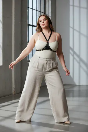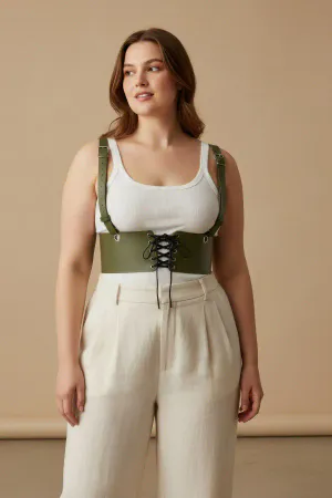 Plus Size Khaki Women's Belt, Corset Look Leather Harness Body Accessory - APFT1297