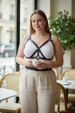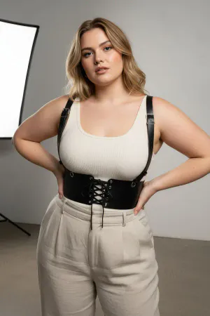 Plus Size Black Women's Belt Corset Style Leather Harness Accessory - APFT1297