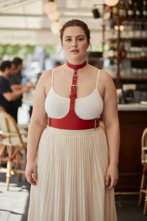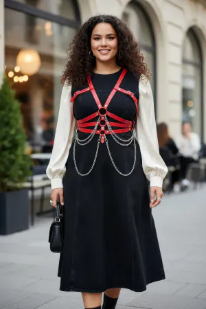 Plus Size Red Women's Belt Leather Harness Chain Detailed Body Accessory - APFT9