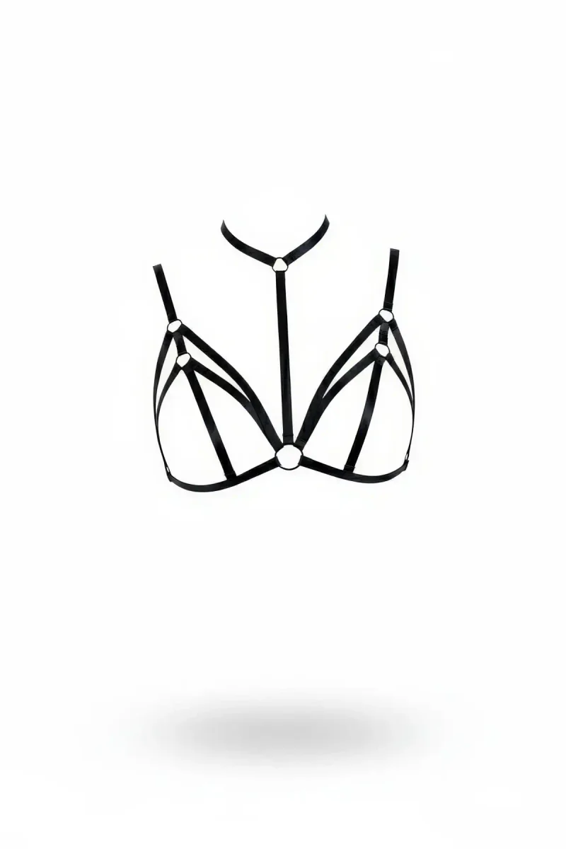Black Chest Harness Faux Leather O-Ring Bralette - APFT190