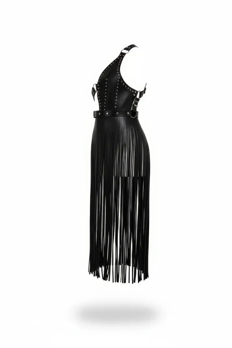 Black Skirt Faux Leather Skirt with Multi-Belt Cage Structure - APFT785