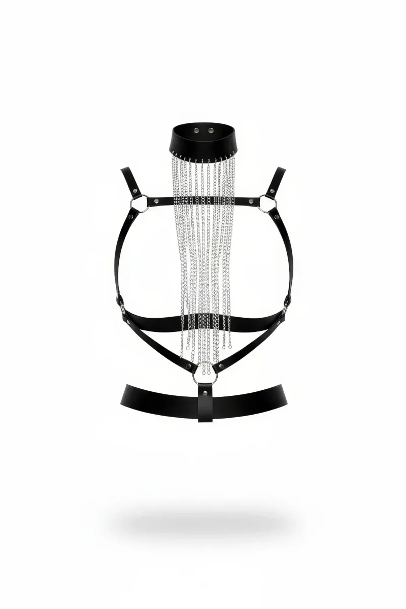 Black Women's Belt Chain Tasseled High Collar Body Accessory - APFT947