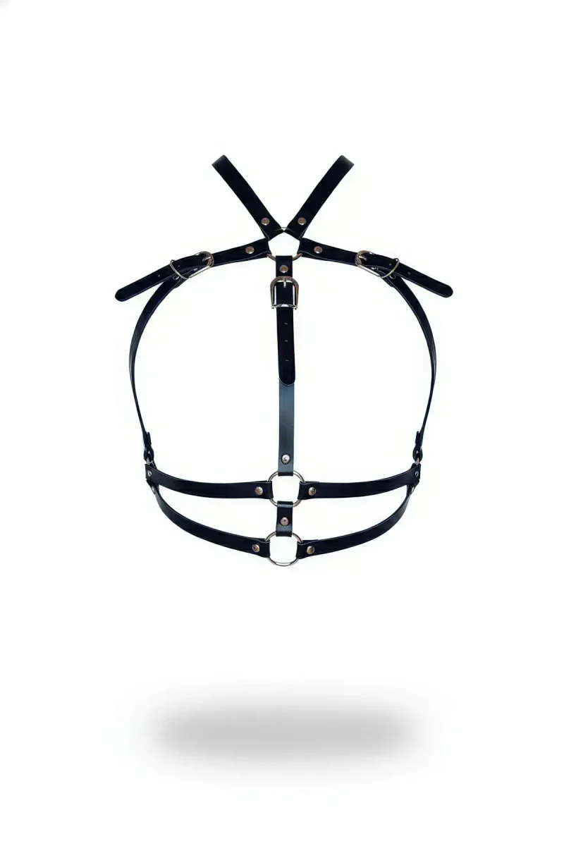 Black Women's Belt Leather Body Accessory with Ring Detail - APFT728