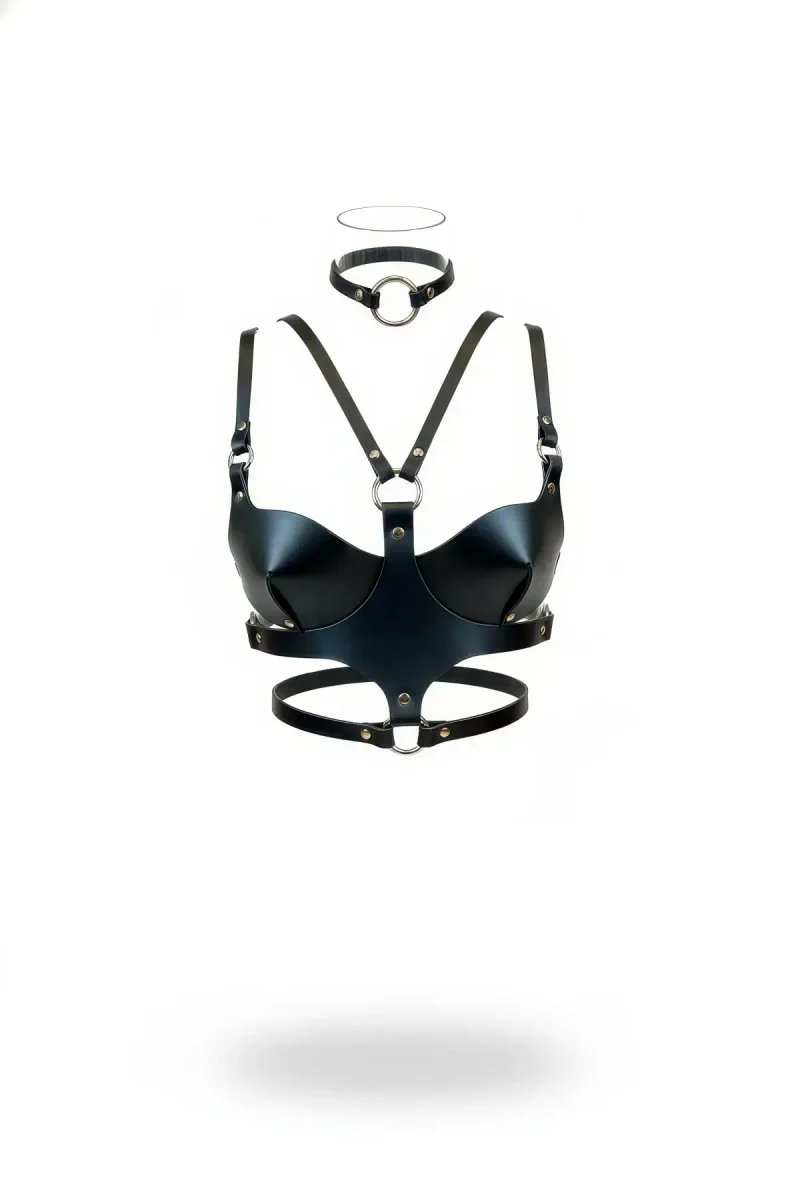Black Women's Belt Leather O-Ring Detailed Body Accessory - APFT1296