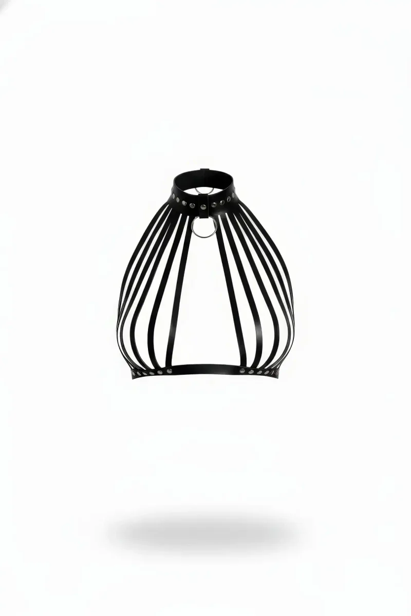 Black Women's Belt Leather Studded Neck Body Cage - APFT551