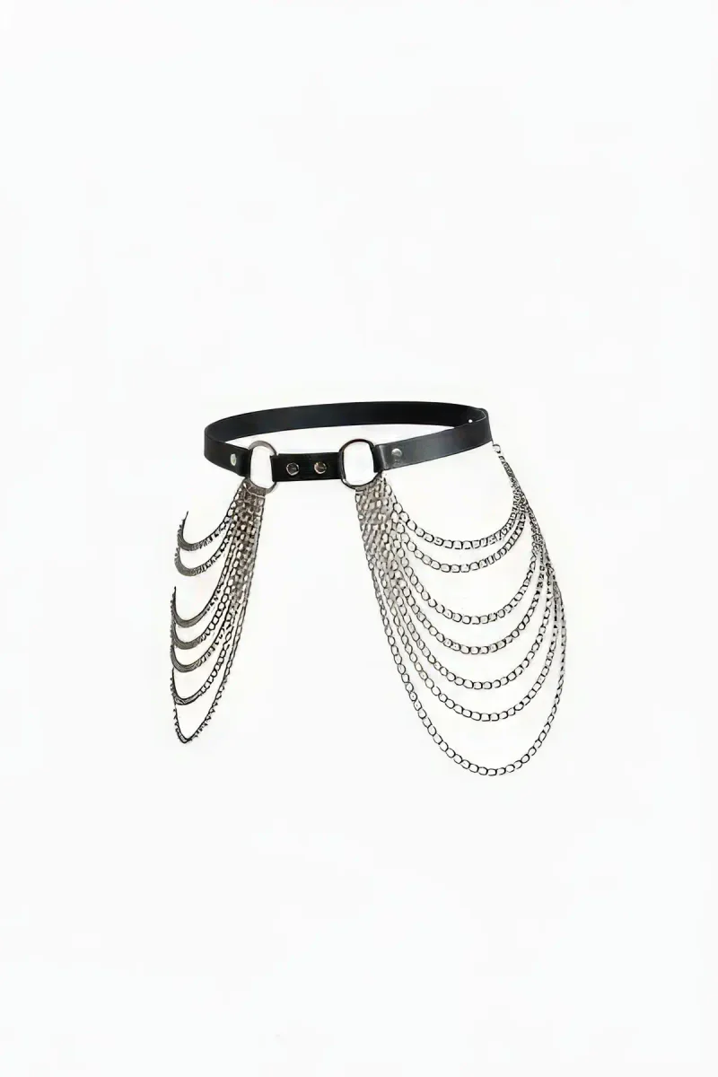 Black Women's Belt Waist Accessory with Multiple Chain Detail - APFT738