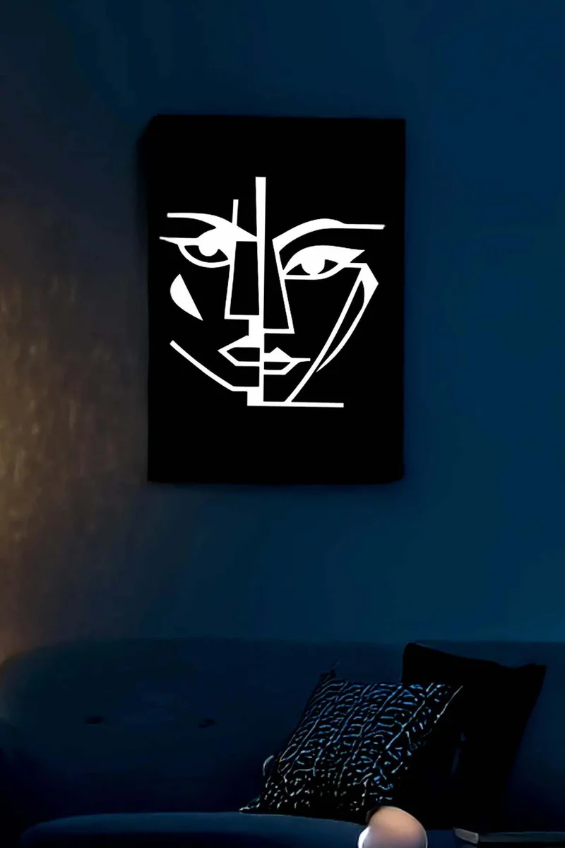 Cubism Abstract Faces with Reflectors on Skin, Reflective Painting Reflected in the Dark