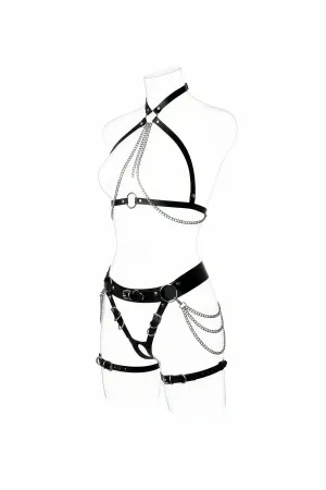 Black Harness Suit Chain Detailed Leather Body Belt - APFT1084