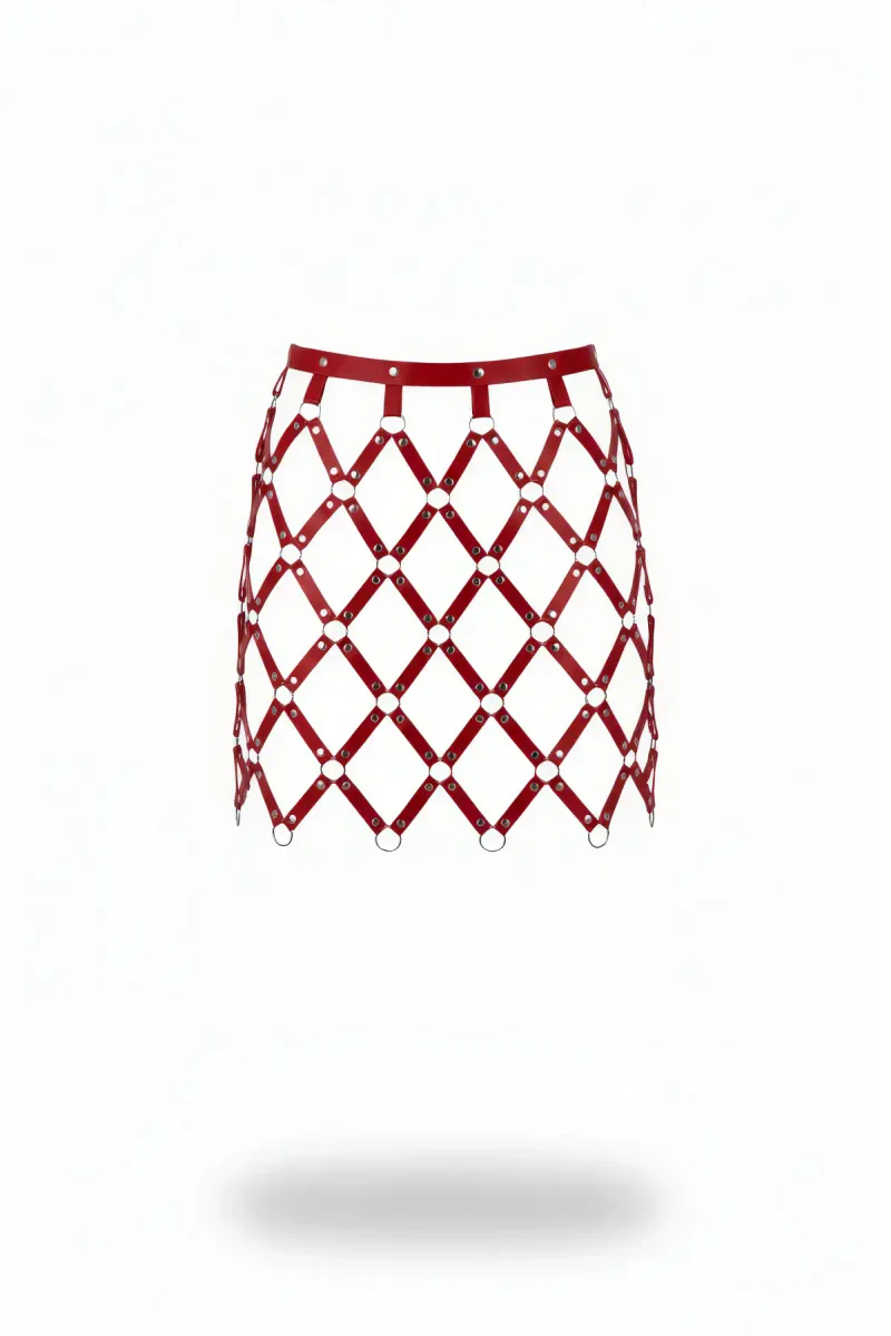 Red Skirt Lattice Patterned Skirt with Hoop Detail Mini Skirt - APFT694