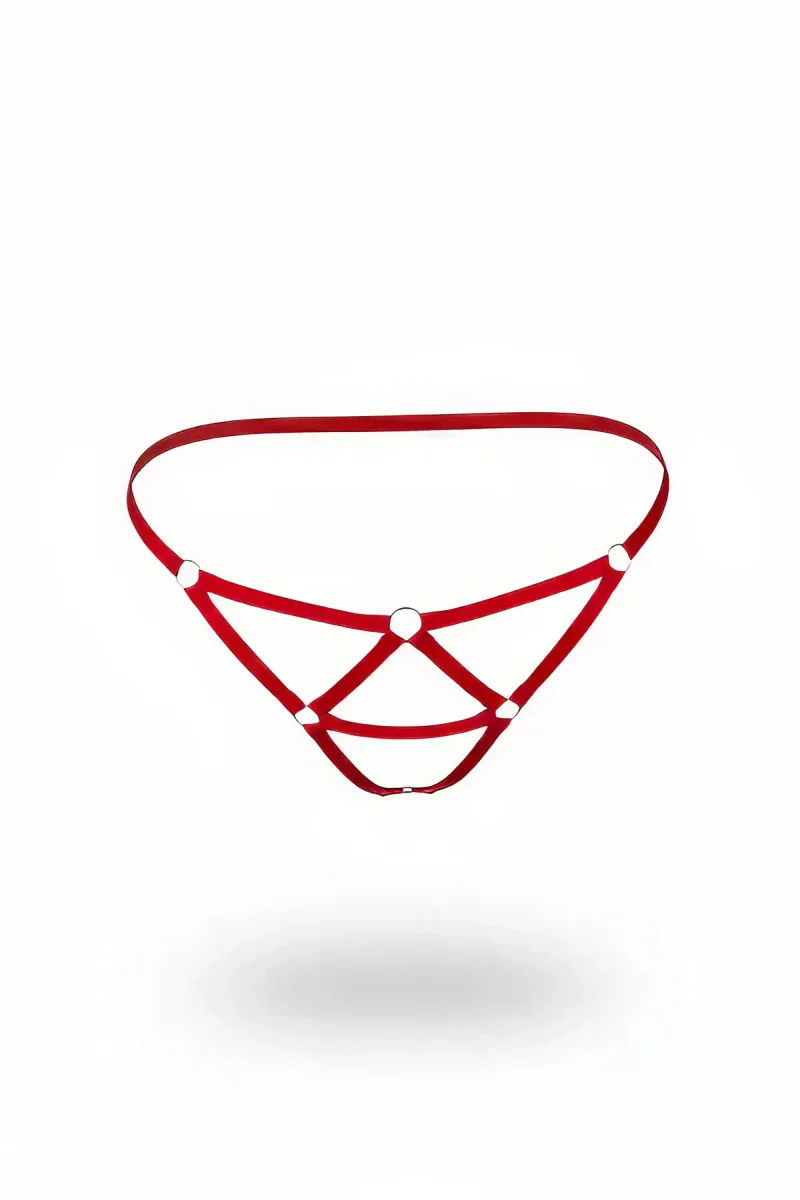 Red Thong - Panties with O-Ring Tape Detail - APFT1206