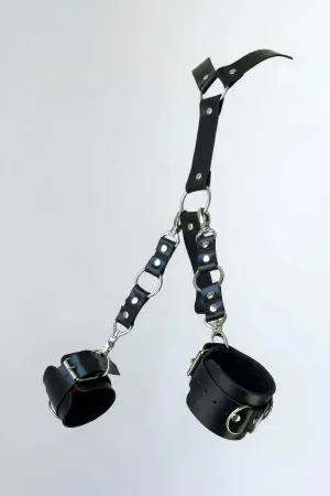 Black Whip - Handcuff Set with Leather Connection and Metal Detail - APFT1024