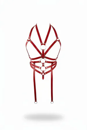 Red Chest Harness Leather Ring Detailed Body Accessory - APFT23