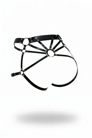 Black Thong - Panty Body Garter with Leather Buckle - APFT1007
