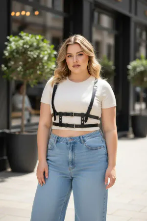Plus Size Black Women's Belt Adjustable Body Accessory with Leather Harness Look - APFT941