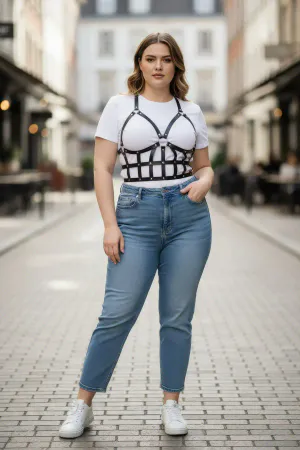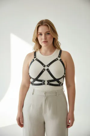 Plus Size Black Women's Belt Studded Leather Body Harness Accessory - APFT850