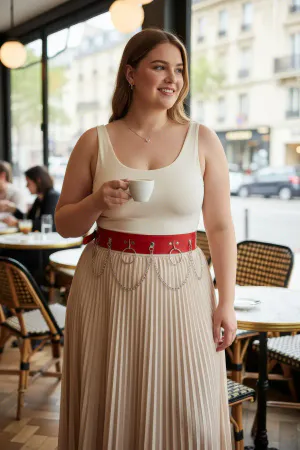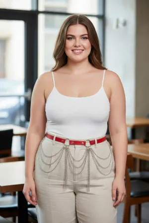 Large Size Red Women's Leather Belt with Chain Detail Outfit Accessory - APFT729