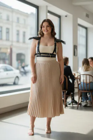 Plus Size Khaki Women's Belt Leather Harness Ring Detailed Body Accessory - APFT633