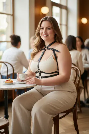 Plus Size Black Women's Belt Leather Body Accessory with Shoulder Detail - APFT717